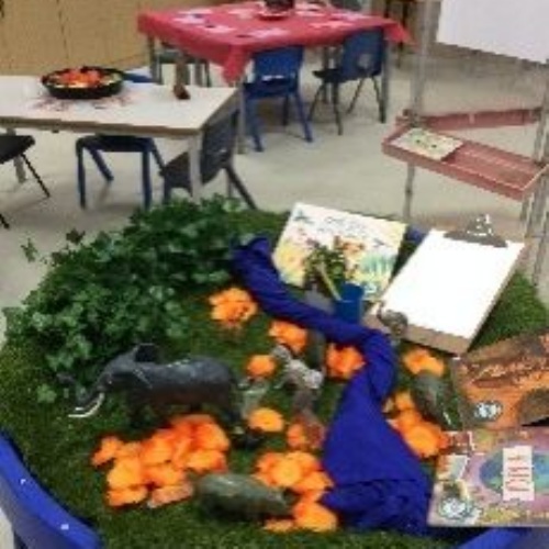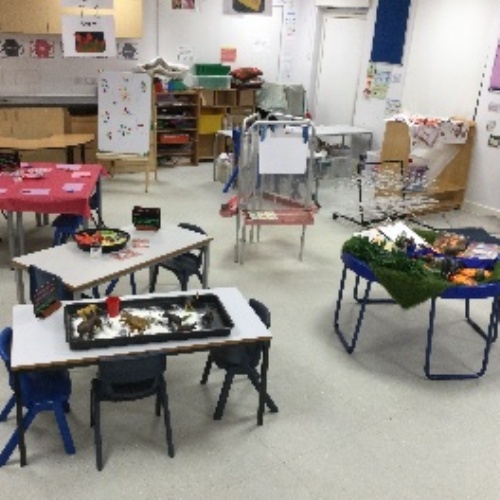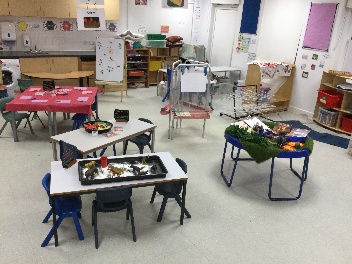 The space is thoughtfully set out to cater to a diverse level of need. Children benefit from accessible, practical activities; allowing them to consolidate knowledge and build confidence. Challenge is offered through problem-solving tasks and targeted questioning. Underpinning all activities is a strong emphasis on language acquisition.
